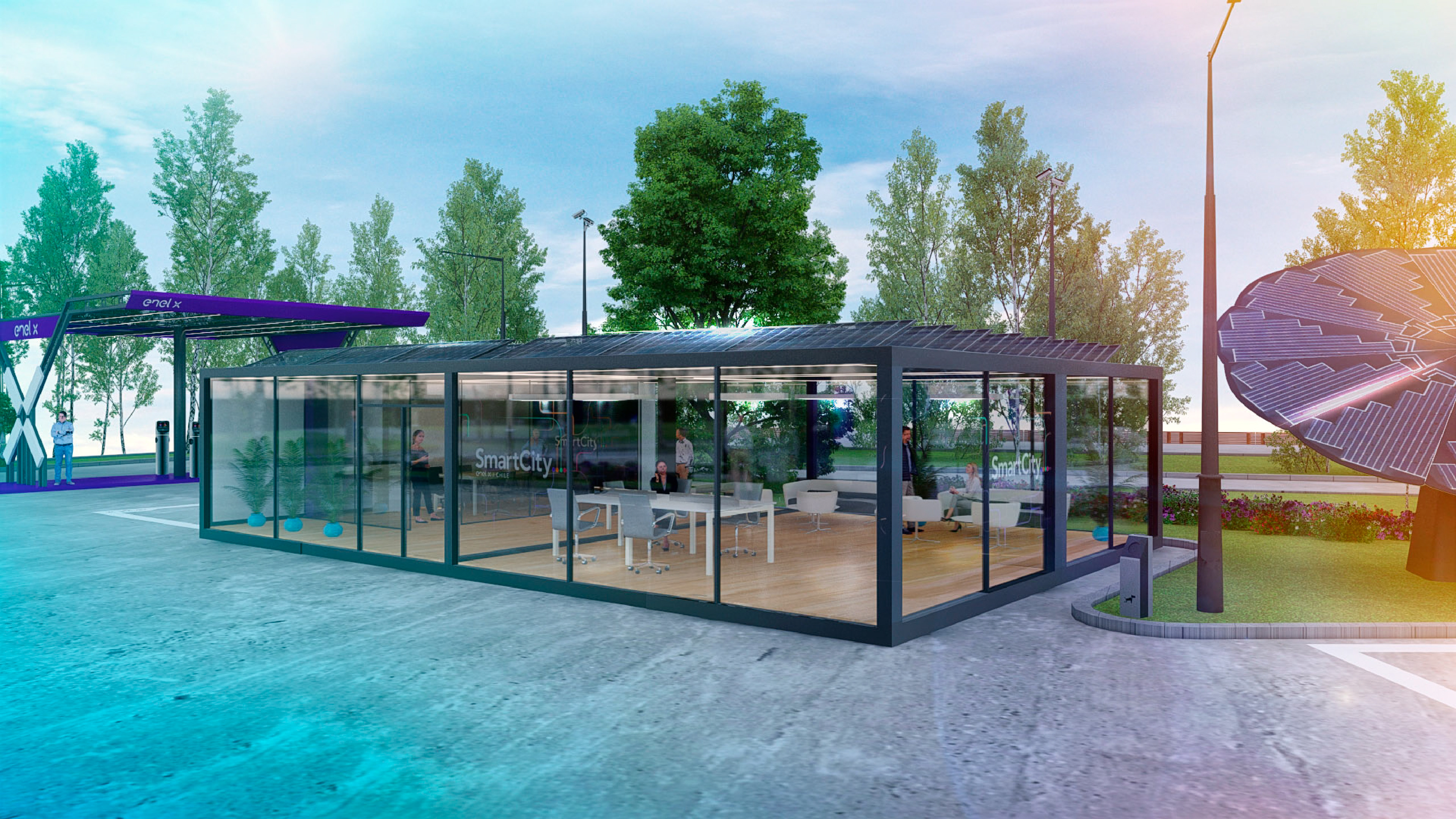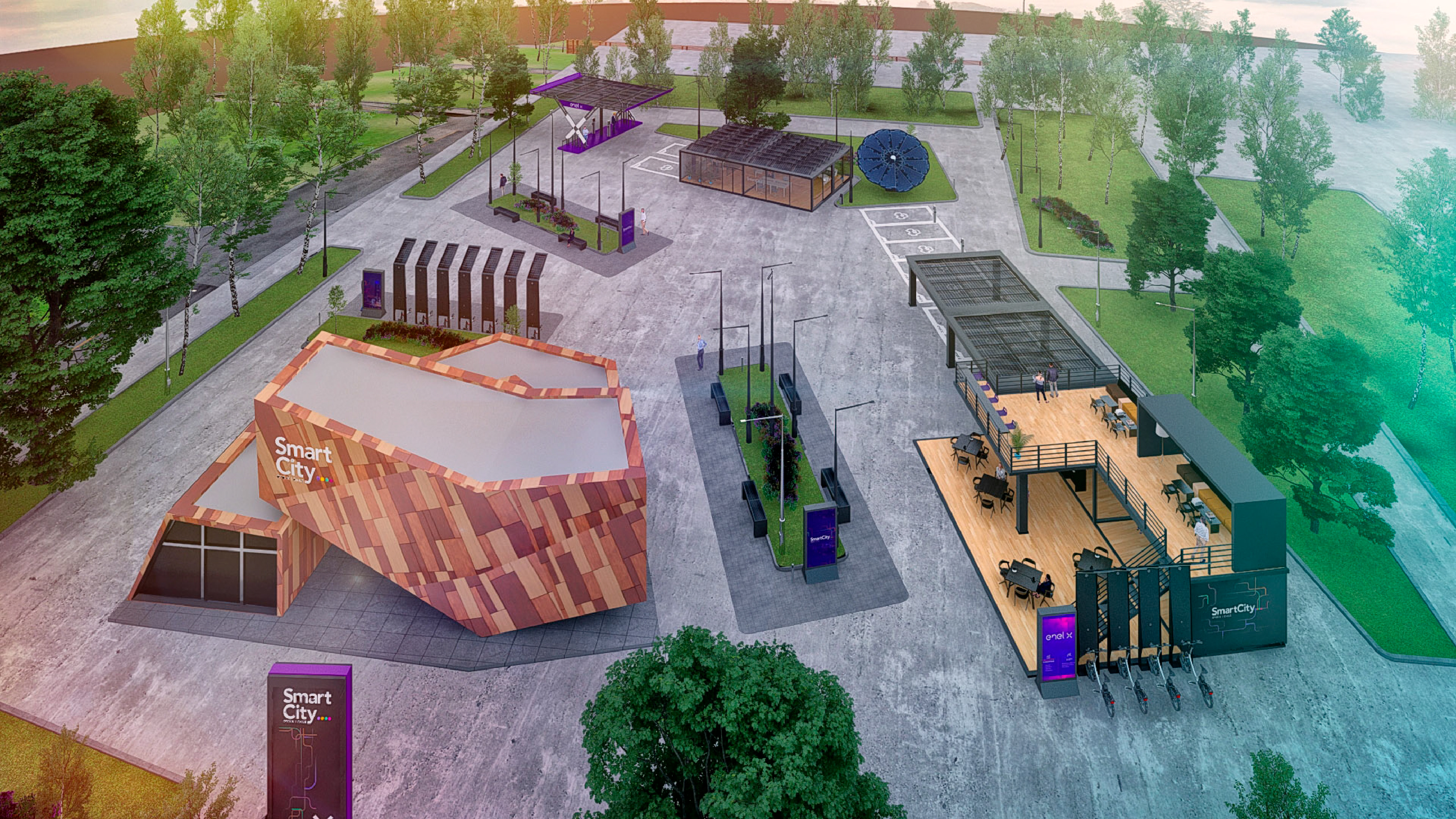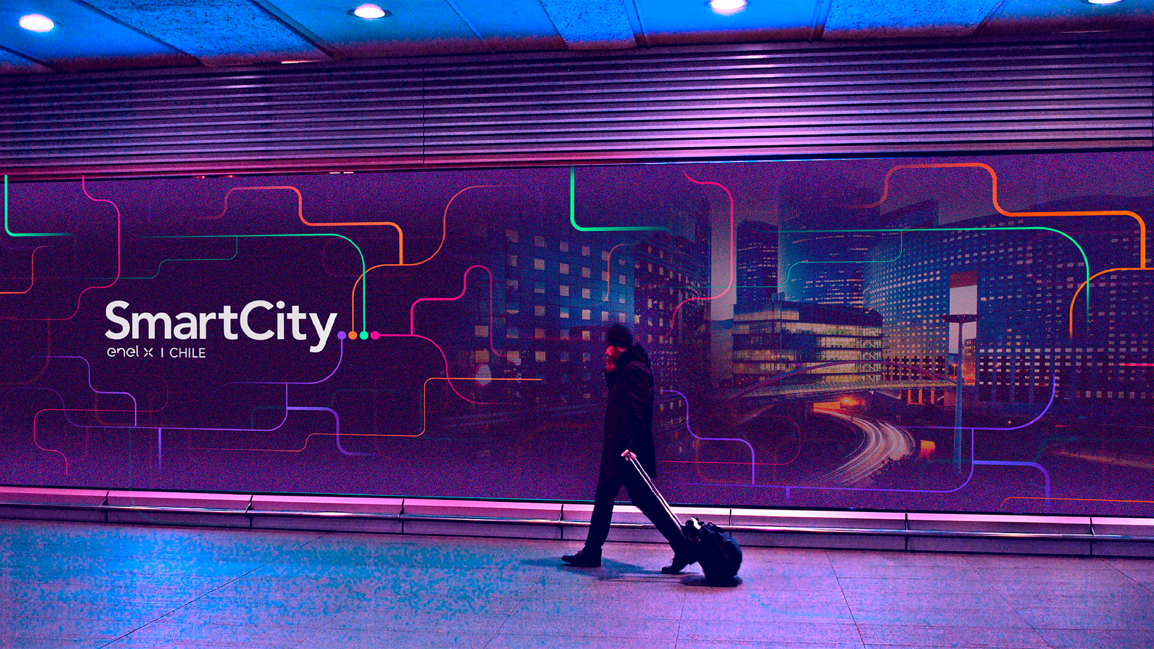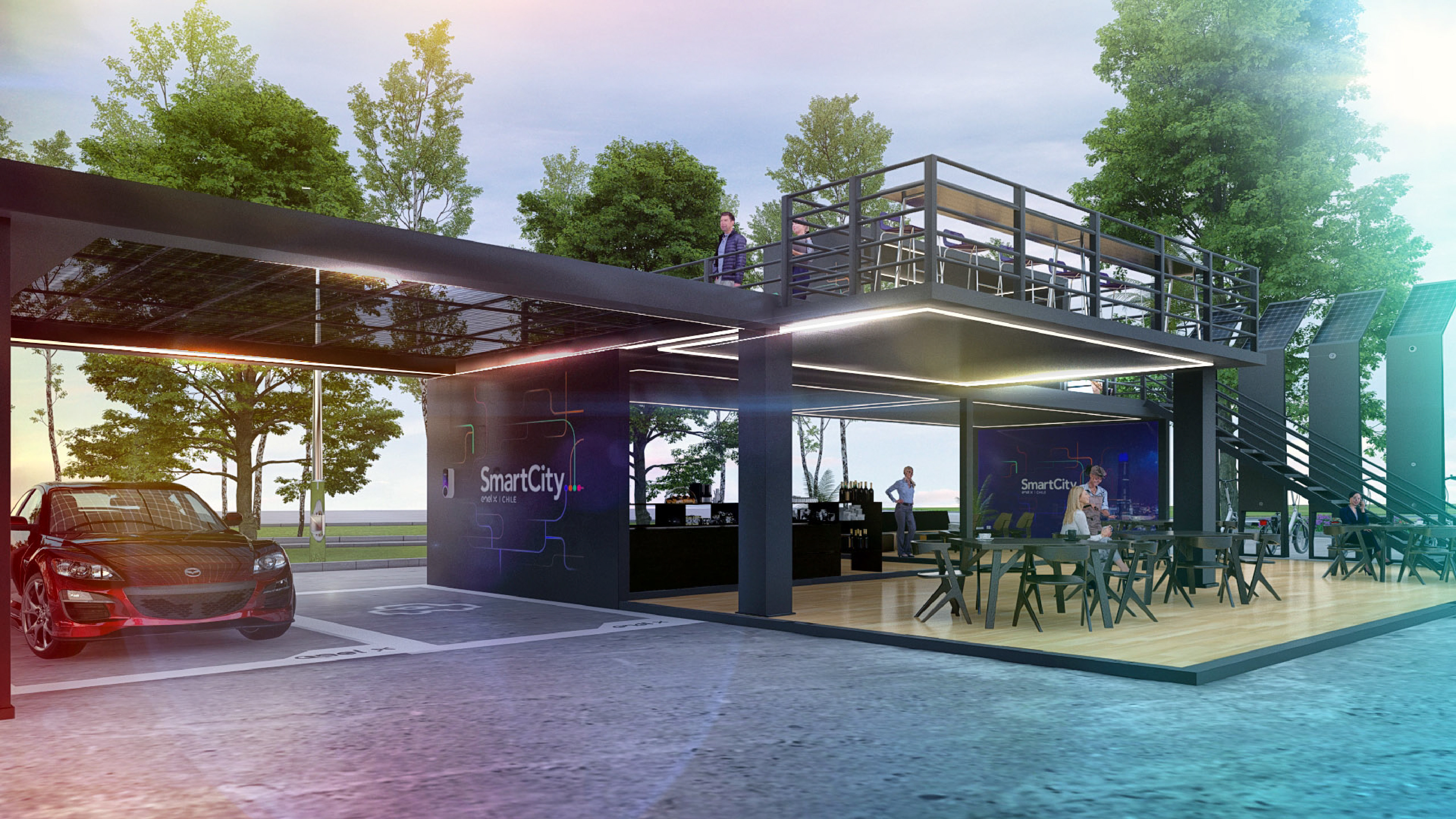 Smart City Enel X — Brand & Spatial Concept This project focused on the creation of the Smart City Santiago concept for Enel X, integrating branding, corporate identity, app design, and sustainable architectural spaces. The Team was responsible for developing the brand concept and visual identity, designing the app interface, and conceptualizing sustainable architectural environments aligned with smart city principles. Also produced 3D visualizations and renders to communicate the urban vision effectively. The result is a cohesive proposal that combines brand strategy, digital design, and sustainable architecture, positioning Smart City Santiago as a forward-looking model of innovation and urban sustainability.