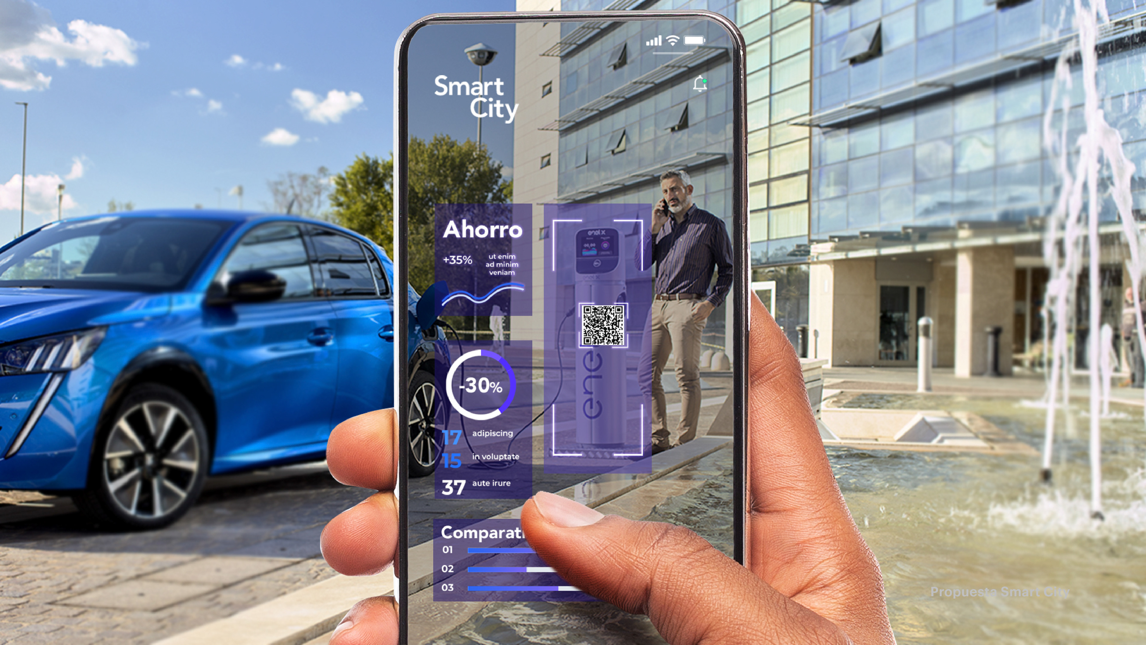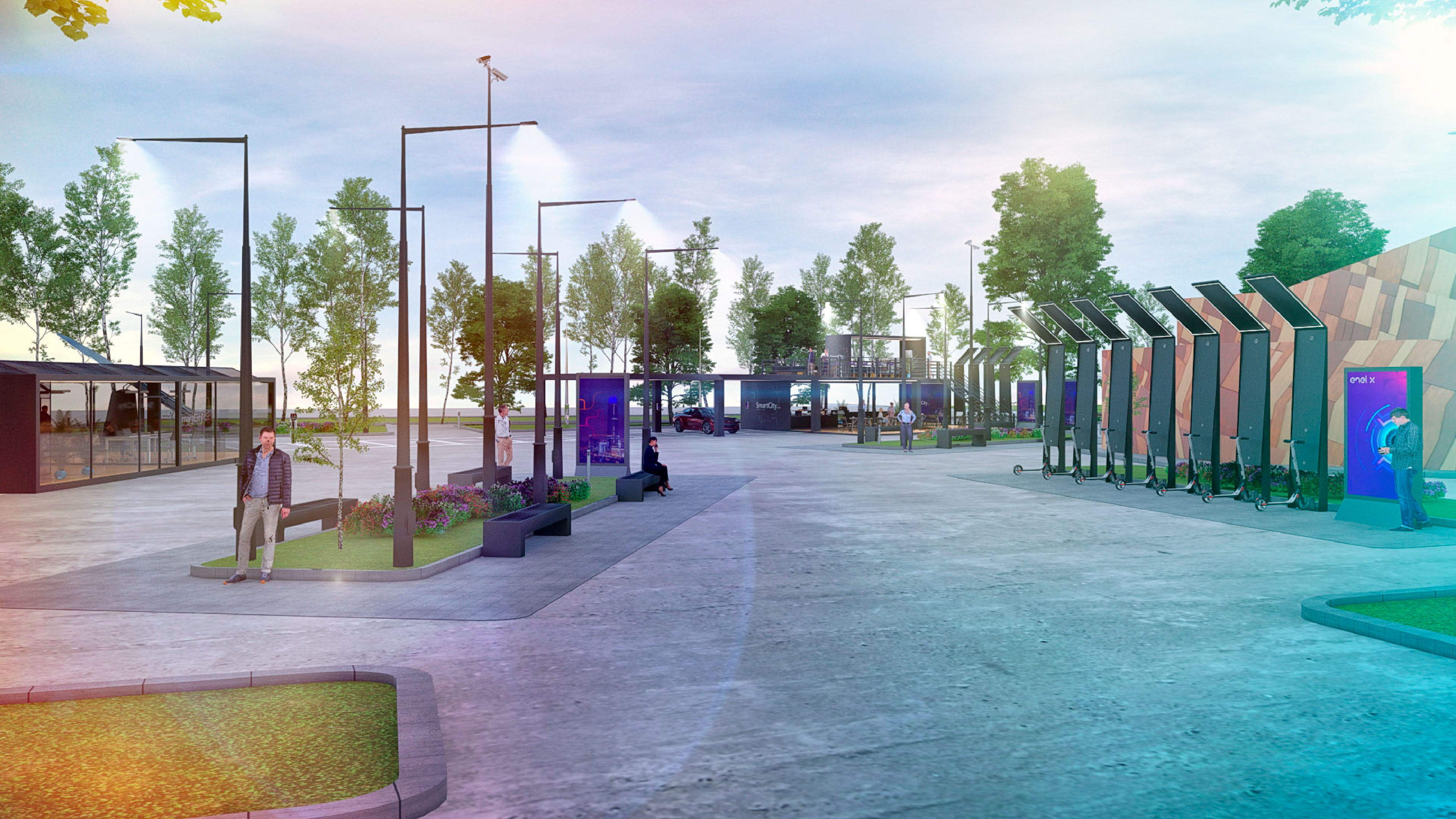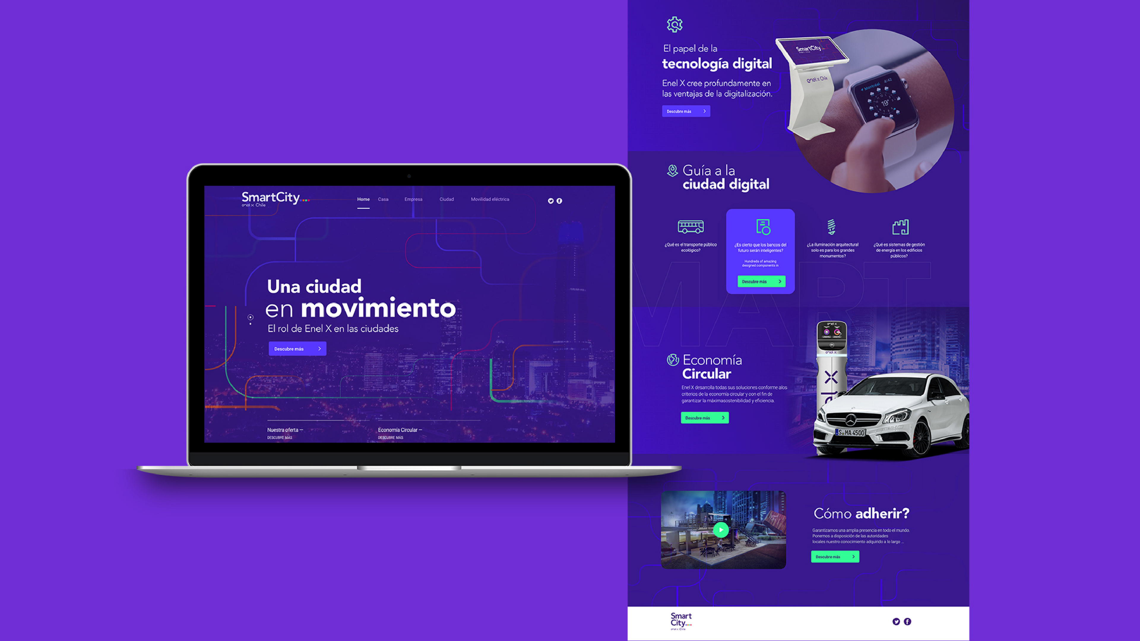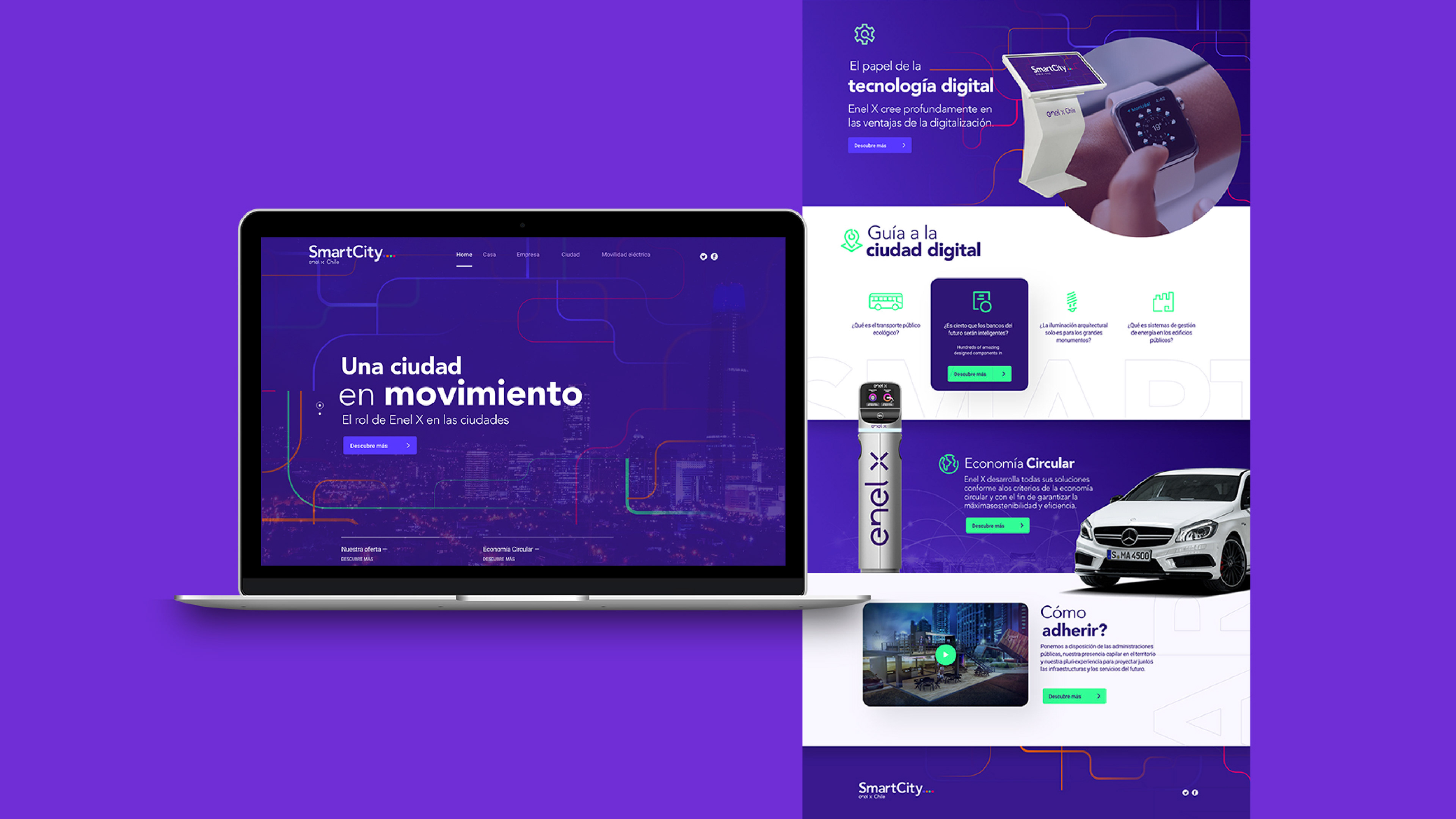 Smart City Enel X — Brand & Spatial Concept This project focused on the creation of the Smart City Santiago concept for Enel X, integrating branding, corporate identity, app design, and sustainable architectural spaces. The Team was responsible for developing the brand concept and visual identity, designing the app interface, and conceptualizing sustainable architectural environments aligned with smart city principles. Also produced 3D visualizations and renders to communicate the urban vision effectively. The result is a cohesive proposal that combines brand strategy, digital design, and sustainable architecture, positioning Smart City Santiago as a forward-looking model of innovation and urban sustainability.