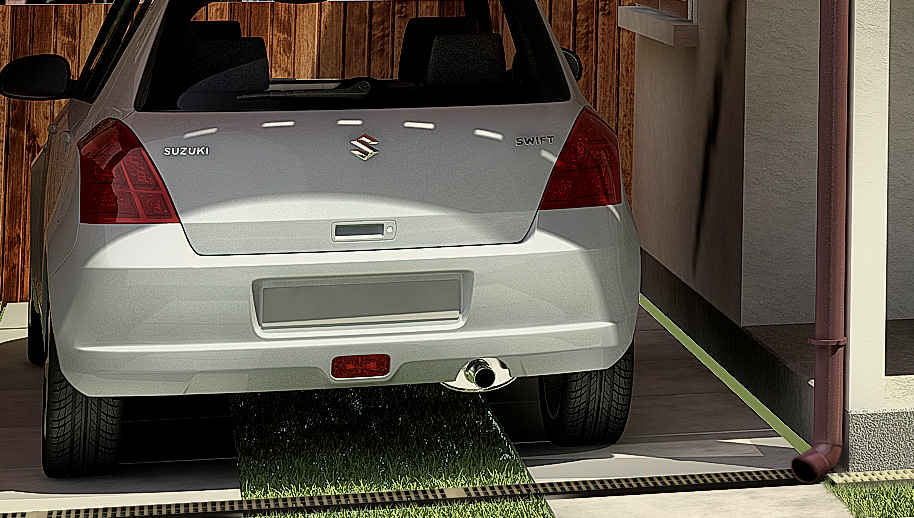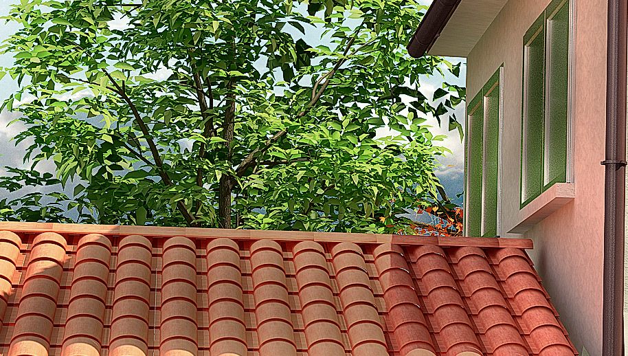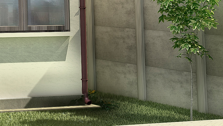 Proyecto de visualización arquitectónica e ilustración 3D, de elementos de canalización de aguas lluvias instalados en casa tipo.